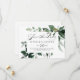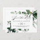 Esta caligrafía geométrica de la boda horizontal verde ahorra la fecha es perfecta para un boda moderno. El diseño se basa en las elegantes ramas y hojas botánicas de color agua, que adornan un marco geométrico.
