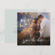 Anuncio de boda de caligrafía moderna con cola de florituras y foto favorita, guarde la fecha.