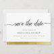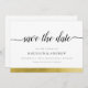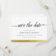 Elegante tarjeta de guardar la fecha de boda con caligrafía moderna simple en negro y blanco con foil dorado. Si lo desea, agregue una foto en la parte trasera. Para una personalización más avanzada de este diseño, por favor haga clic en el botón "PERSONALIZAR" arriba.