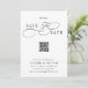 Este guión romántico para guardar la tarjeta de anuncio de fecha es perfecto para una simple boda. El diseño minimalista en blanco y negro incluye elegantes y románticas letras de caligrafía rápida con un código QR. Para una personalización más avanzada de este diseño, haga clic en el BOTÓN HERRAMIENTA DE DISEÑO AZUL de arriba.