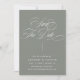 Este guión romántico para guardar la tarjeta de anuncio de fecha es perfecto para un simple boda. El minimalista diseño en blanco y verde sabio presenta elegantes y románticas caligrafías con tipografía formal. Para una personalización más avanzada de este diseño, haga clic en el BOTÓN HERRAMIENTA DE DISEÑO AZUL de arriba.
