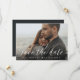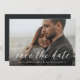 Anunciar la fecha de su boda con un estilo inolvidable con esta elegante foto guardar las tarjetas de fecha, con una foto horizontal o orientada hacia el paisaje de sangrado completo con "guardar la fecha" colocada en la parte inferior con letras de caligrafía blanca. Sus nombres, fecha de boda y ubicación del boda aparecen bajo letras modernas. Personalice la parte posterior con detalles adicionales, como su sitio web boda.
