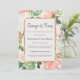 Estas tarjetas de cambio de planes van a ayudar a sus invitados a navegar los cambios necesarios que ha hecho a su evento. Personalice con la información de su evento para crear un cambio de planes único que sus amigos y familiares seguramente apreciarán. Diseñado con un diseño floral de acuarela con fuentes modernas, tanto delante como detrás.