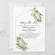 Elegante tarjeta de cambio de fecha de boda manuscrita con vegetación.