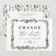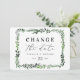 tarjeta de cambio de fecha floral acuarela frondosa. Con hermosas hojas de acuarela y tipografía moderna y audaz, esta invitación de cambio de fecha está en tendencia y es perfecta para cualquier temporada. Parte de un conjunto de bodas