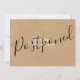 Esta elegante tarjeta rústica de cambio de fecha kraft puede ser personalizada con la información de su aplazamiento. La parte posterior tiene detalles adicionales. ¡Perfecta para bodas, despedidas de soltera, baby showers, bautizos, fiestas de compromiso, celebraciones de aniversario, graduaciones, reuniones de cumpleaños y otros eventos especiales durante todo el año! Diseñado por Thisisnotme©