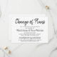 Estas tarjetas de Cambio de Planes ayudarán a sus invitados a navegar por los cambios necesarios que ha realizado en su evento. Personalice con la información de su evento para crear un Cambio de Planes único que sus amigos y familiares seguramente apreciarán.