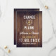 Tarjeta de cambio de planes elegante de foto personalizada de madera rústica para que tus invitados estén al tanto cuando pospongas tu boda especial