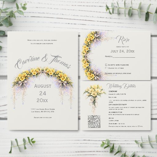Reserva La Fecha Canary Yellow Romantic Freesia Floral Wedding