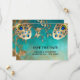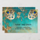 Un bonito diseño de estilo 3D con plumas de pavo real iridiscente en azul, verde esmeralda, verde azulado y dorado, con un fondo de mármol azul y florido que tiene en los bordes unos giros decorativos. El diseño enmarca dos plantillas de color negro editables que pueden cambiarse a cualquier texto que elija. Este moda y ilustracion elegante es ideal para un boda temático al aire libre o pavo real, una ducha de novia o un aniversario.