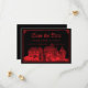 Impresiona a tus invitados con este aviso de guardar la fecha de boda gótico. Esta tarjeta clásica presenta una inquietante ilustración vintage de un castillo, que puedes reemplazar con una imagen del destino donde te casarás (se prefiere fondo transparente). Una tipografía blackletter caligráfica muestra los nombres de la novia y el novio, la fecha y la ubicación. Un borde dibujado a mano encierra el diseño. La paleta de colores es rojo sangre sobre negro.