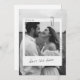 This minimalist wedding save the date flat card features a full frame couple photo, poloroid frame overlay and a contemporary set of fonts. The design is unique with an elegant, but casual flair. Perfect for the chic modern minimalist couple.