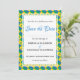 Elegante invitación SAVE THE DATE con la bandera de ST VINCENT Y LAS GRANADINAS. El texto dice 'Y los dos se convertirán en uno'. La redacción se puede personalizar con su propio mensaje y para sus celebraciones especiales, por ejemplo, cumpleaños, días de la independencia, días del patrimonio, reuniones familiares, etc. Papelería a juego disponible. Sentirse orgulloso de su herencia en su día especial. Parte de la Colección de BODAS DE ST VINCENT Y LAS GRANADINAS en Berean Designs.