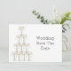 Wedding save the date card champagne glasses design. Customise this champagne coloured wedding save the date with your wedding details then have it printed and sent to you or instantly download it. Should you require any help with customising then please contact us through the link on this page. Champagne glasses design champagne coloured personalised wedding save the date invitation that you can have printed or instantly downloaded