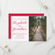 Add a bold pop of color to your celebration with this cherry red wedding collection. Modern romantic typography with pink brushstroke accent. Photo template via Pixabay licensed under CC0 and must be replaced with your own photo.