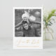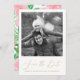 Hermosas flores rosadas crepusculares, exuberante vegetación de acuarela y elegante caligrafía dorada falsa hacen de este diseño de foto una forma encantadora de compartir las buenas noticias con amigos y familiares.