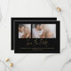 Clásico 2 Fotos Boda Negra de Oro Guardar la Fecha. Disponible digitalmente e impreso. Elegancia dorada y negra. Simplemente reemplace las dos fotos de ejemplo con sus propios favoritos. Guardar la fecha está en un guión elegante y personaliza fácilmente el resto del texto. Añade tu código QR a tu sitio web boda en la parte posterior, lo que hace que sea una opción conveniente para que tus invitados vean todos los detalles. Simplemente cambie la dirección URL de ejemplo con la suya propia y su código QR se generará automáticamente.