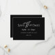 Este clásico moderno diseño de tarjeta plana de boda negra para guardar la fecha es perfecto para tu boda moderna elegante. Este diseño presenta caligrafía simple blanca descentrada sobre un fondo negro oscuro para combinar con tu boda clásica tradicional o boda boho minimalista en primavera, verano, otoño o invierno. Por favor, no dude en hacérnoslo saber si tiene alguna pregunta sobre este diseño.