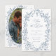 Announce your special day with an elegant traditional wedding photo save the date card featuring a vintage-style oval floral and ribbon frame in soft dusty blue. The same frame holds your favorite couples photo on the back. Perfect for a formal ceremony or an affair with a classic, timeless aesthetic. This refined design offers an opulent look. Created by Simply Farmhouse Press.