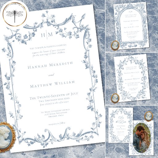 Classic Elegant Dusty Blue Floral Frame WeddingDiseñado por Kathe Santillo