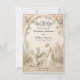 Announce your formal estate union with a romantic neo-classical design featuring a proposal scene and soft botanical accents in a timeless monochrome palette.This design features a highly detailed digital illustration simulating a 3D bas-relief stone carving. The central image depicts a romantic engagement scene where a gentleman kneels to propose to a lady in a flowing gown, set within a classical rotunda temple architecture. The "carved" stone elements are rendered in shades of beige, cream, and warm grey, contrasted by flat-printed pastel pink and peach roses with muted sage green leaves climbing the arched frame. The typography combines an elegant, ornate black calligraphy script for names with a traditional serif font for the details.This is a flat printed image with a Faux Stone Embossed effect, not actual raised material or textured paper.
