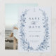 This elegant photo save the date card features soft dusty blue botanical florals arranged in a graceful wreath, paired with refined typography for a timeless winter aesthetic. The back showcases a personalized photograph, blending romantic storytelling with classic design. Inspired by vintage botanical artwork and cool icy tones, this sophisticated announcement is perfect for formal, traditional, and luxury winter weddings, offering a polished first glimpse of your celebration.