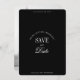 This classy, elegant save the date card in black and white features a minimalist design with "save the date" styled with a mixture of classic text and elegant calligraphy script that lends a sophisticated, classy vibe. The design also features a place to add your photo that covers the entire back of the card.