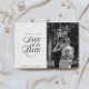 This classy elegant save the date card in black and white features a minimalist design with "save our date" styled in a mixture of classic text and elegant calligraphy script that lends a sophisticated, classy style with old money vibes. It also includes a placeholder for your photo that covers half of the front of the card. The back of the card includes an editable placeholder to indicate your wedding website URL, which can also be deleted if the URL is not yet available.