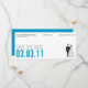 Un diseño contemporáneo limpio está compensado por un tradicional pastel de bodas con novios en blanco y negro. Perfecto para la pareja moderna que aprecia el kitsch. La fecha de su evento no se olvidará cuando se destaque en azul brillante. Fácilmente personalizable con su propia información. Agregue la url de su sitio web de boda en la parte posterior. Disponible también con productos coincidentes, así como diseños y colores alternativos.