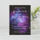 Una bonita foto espacial de un cúmulo de galaxias morado y azul con un diseño de texto de boda de save the date con caligrafía contemporánea blanca. Cree sus propias tarjetas de invitación personalizadas para una boda en un planetario u otro lugar cósmico. Todas las áreas de texto de este producto de papel se pueden personalizar. Hay mucho espacio para más información según sea necesario. La parte posterior es un morado sólido coordinado, pero puede cambiar el color o copiar y pegar la imagen espacial en ese lado. Pruebe una orientación diferente para la imagen espacial si lo desea.