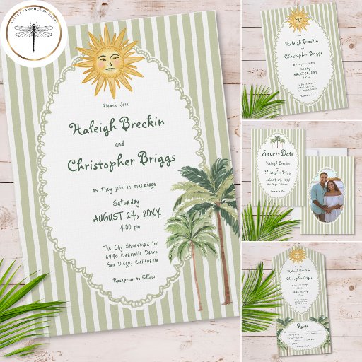 Reserva La Fecha Coastal Chic Sun Palm Tree Wedding