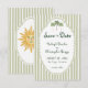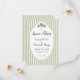 This whimsical coastal wedding photo save the date features a lace border, palm trees, and stylish sage green stripe background. Perfect for a beach or California destination wedding. A retro vintage sun is framed in a whimsical lace frame on the back. Created by Simply Farmhouse Press.