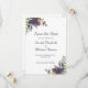 Boda Guarda La Tarjeta De Fecha. Diseño morado amarillo y verde floral con espacio en la parte posterior para su sitio web boda código QR.