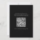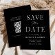 Anuncie sus próximos nupcias con estilo con nuestro elegante y moderno código QR guarde la tarjeta de fecha. El no foto guarda las características de fecha "Save the Date" en serif blanco y fuentes de script con fondo negro con sutiles puntas blancas. Personalice la parte delantera de guardar la tarjeta de fecha agregando sus nombres, fecha de boda, ubicación de boda y otros detalles de boda. El mínimo guardar la tarjeta de fecha se revierte para presentar el código QR de su personalizado con el sitio web boda y el texto personalizado. ¡Perfecto ahorre la fecha tanto para los bodas modernos formales como informales!