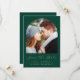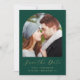 Esta sencilla y minimalista tarjeta Save the Date incluye un arco fotográfico sobre las palabras "Save the Date" en un elegante guión de escritura a mano de color dorado, seguido por los nombres de la pareja, la fecha boda y la ciudad en letra sans serif sobre un fondo verde esmeralda. Añada un mensaje más detallado con información adicional sobre el reverso, junto con un código QR que envía invitados a su sitio web boda.