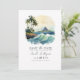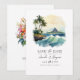 Captura la esencia de una boda soñada en Hawaii con esta impresionante tarjeta de guardar la fecha de destino. Con una escena de playa tropical de acuarela en la parte frontal y flores tropicales vibrantes con un código QR en el reverso, este diseño combina perfectamente la elegancia y la practicidad. Fácilmente personalizable con los detalles de su boda, esta tarjeta establece el tono perfecto para su inolvidable celebración en la isla.