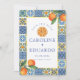 Reserva La Fecha Código QR de boda mediterránea con azulejos azul n