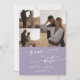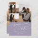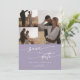 Este código QR de lavanda de moda boho multi foto de color púrpura ahorra la tarjeta de fecha es perfecta para un boda minimalista. El colorido y polvoriento diseño bohemio moderno presenta una caligrafía rústica sencilla con un estilo único y clásico. Personalice la fecha guardada con sus nombres, fecha de boda, ubicación, 4 fotos de compromiso y un código QR que enlaza a su sitio web boda.