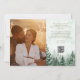 Esta tarjeta de aviso de boda con bosque de pinos y acuarela rústica y elegante puede ser personalizada con tus fotos y datos especiales en tipografía moderna. Diseñada por Thisisnotme©