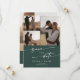 Este código QR de moda esmeralda verde esmeralda multi foto guardar la tarjeta de fecha es perfecto para un boda minimalista. El bosque de cazadores negros y húmedos de diseño bohemio moderno presenta una caligrafía rústica sencilla con un estilo único y clásico. Personalice la fecha guardada con sus nombres, fecha de boda, ubicación, 4 fotos de compromiso y un código QR que enlaza a su sitio web boda.