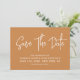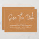 La caligrafía moderna permite guardar la fecha con un fondo de color naranja y un código QR escandaloso para un sitio web o información de contacto en la parte posterior.