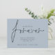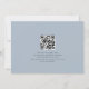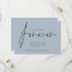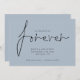 Código QR moderno Decidimos usar Forever Blue Save The Date Añadir tu código QR a tu sitio web boda en la parte posterior. Un diseño sencillo de color azul polvoriento para invitar a sus huéspedes a guardar su cita. Decidimos por Forever que está en un elegante guión está en el centro. El resto del texto que puede personalizar fácilmente. Los colores del texto y del fondo pueden cambiarse si desea adaptarse mejor a su tema boda a través de la opción personalizar.