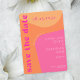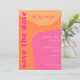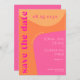 Resumen de formas estilo retro vintage 70s boda económica única ahorra la fecha con el escaneo de QR CODE (generado automáticamente con el enlace de su URL) y tipografía audaz en una moderna y vibrante paleta de colores de moda rosa caliente y rosa naranja moderna. ++++++ Tenga en cuenta que todos los colores pueden cambiar. +++++++++++ La tarjeta es adecuada para bodas contemporáneos informales y elegantes.