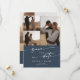 Esta moda boho color azul marino azul marino multi foto código QR guardar la tarjeta de fecha es perfecto para un boda minimalista. El diseño bohemio moderno azul oscuro, suave y monótono, presenta una caligrafía rústica sencilla con un estilo único y clásico. Personalice la fecha guardada con sus nombres, fecha de boda, ubicación, 4 fotos de compromiso y un código QR que enlaza a su sitio web boda.