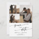Este código QR multifoto en blanco y negro de moda boho ahorra la tarjeta de fecha es perfecta para un boda minimalista. El moderno diseño bohemio blanco y negro presenta una caligrafía rústica sencilla con un estilo único y clásico. Perfecto para cualquier temporada: primavera, verano, otoño o invierno. Personalice la fecha guardada con sus nombres, fecha de boda, ubicación, 4 fotos de compromiso y un código QR que enlaza a su sitio web boda.