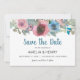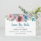 Reserva La Fecha Código QR simple Boda floral azul y rosa