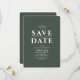 Un verde verde verde oscuro minimalista / verde del bosque ahorra la tarjeta de fecha sin imagen y un ilustracion de color verde dibujado a mano, con una combinación de letras negrita y guiones para el aspecto de moda, en la parte posterior un monograma y código QR para su sitio web o registro. Si necesitas piezas coincidentes que no están en la colección, por favor avísenme (Maria) ¡Feliz de ayudar!