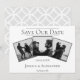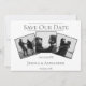 Anuncia la fecha de tu boda a amigos y familiares con este moderno Colaje de 3 fotos Salva la fecha. El diseño del anuncio presenta tres espacios para fotos de la feliz pareja, un diseño de texto limpio y un patrón de diamantes elegante en la parte posterior.