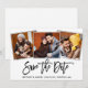Tarjeta de Anuncio de Compromiso Save The Date para Pareja con Modern Brush Script y 3 Fotos