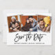 Tarjeta de Anuncio de Compromiso y Aviso de Fecha de Boda con Moderno Pincel para Pareja con 3 Fotos